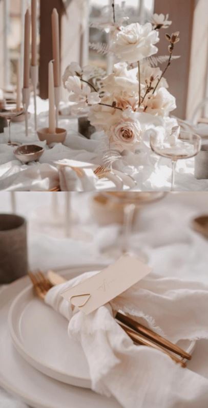 Wir bieten dir drei verschiedene Settings in unterschiedenlichen Farbkonzepten – alle komplett durchgeplant mit Papeterie, Blumendeko und alles was es für eine gelungene und stilvolle Hochzeit benötigt